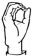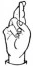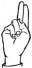 На ћирилици написано ХРАНИМИР БРЕСНОПОЉАЦ састоји се из 19 слова [?]. Исписано ћириличном једноручном азбуком за глувонеме: